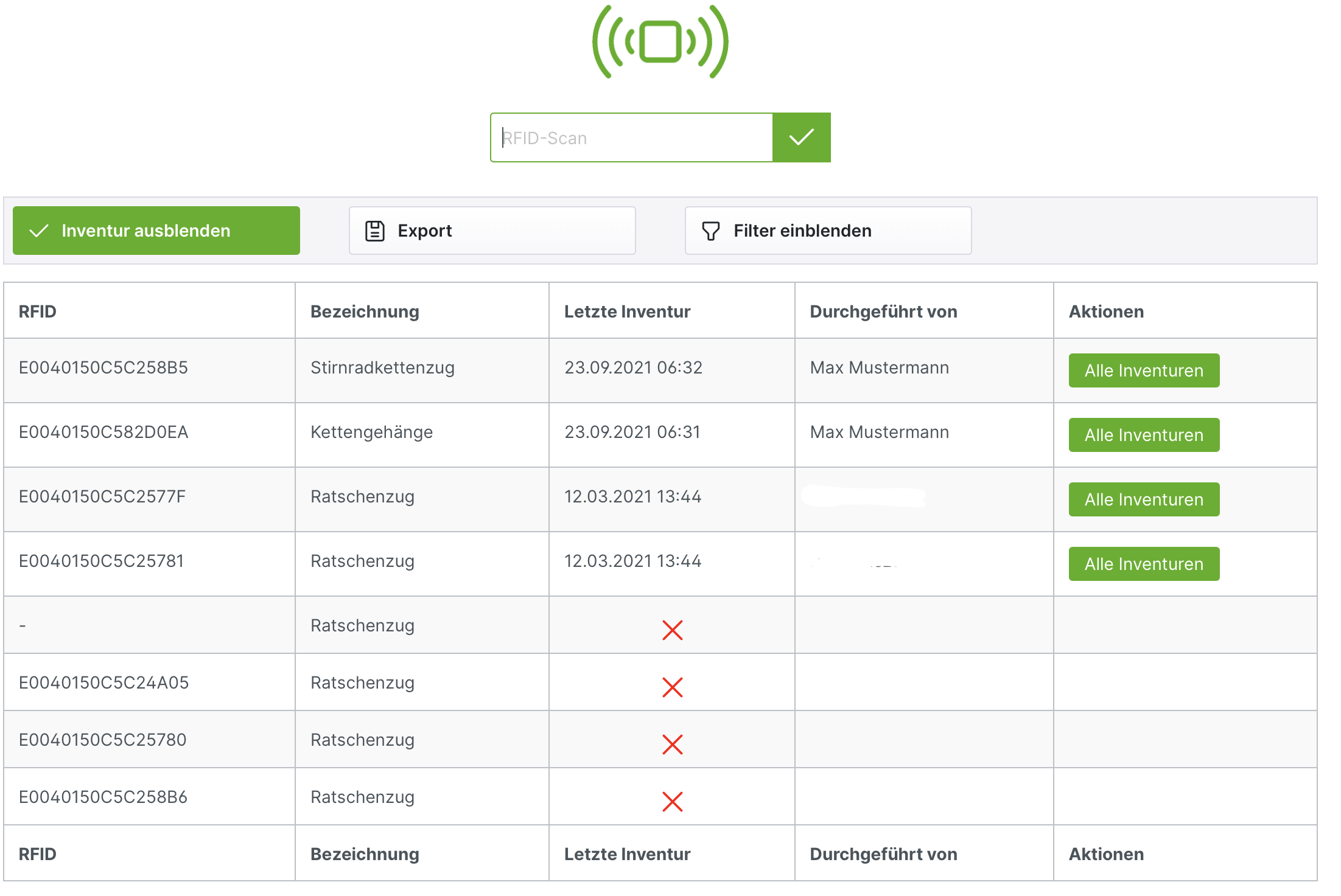Ihr persönlicher Zugang erfolgt über unser Prüfportal. Alle erfassten Informationen ihrer digitalisierten Objekte stehen Ihnen jederzeit online zur Verfügung. Die Selektion eines Objektes erfolgt über den RFID-Reader und kann über den Button „Prüfzeugnis“ aufgerufen, per Mail weitergeleitet oder direkt ausgedruckt werden.